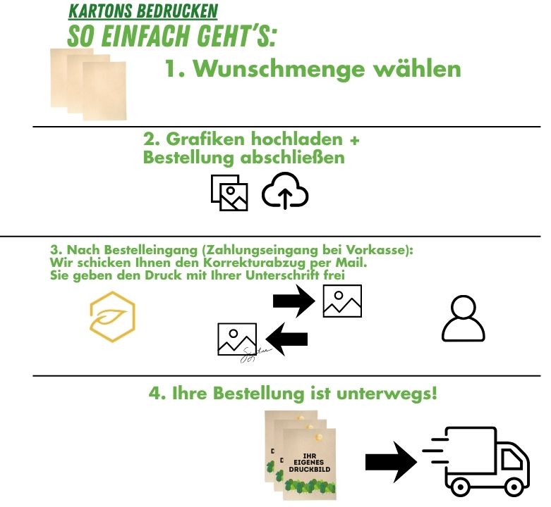 Sie können die praktische Graspapier-E-Commercetasche bei uns mit Ihrem Logo oder anderem Bild bedrucken lassen. Mit einem individuellen Druck verwandeln Sie die die Tasche in einen attraktiven und umweltfreundlichen Werbeträger. Laden Sie beim Kauf Ihr gewünschtes Bild mit hoch: In unserem Grafikstudio prüfen wir die Machbarkeit und setzen uns direkt mit Ihnen in Kontakt, damit Sie Ihren Druck genau nach Ihren Vorstellungen erhalten.