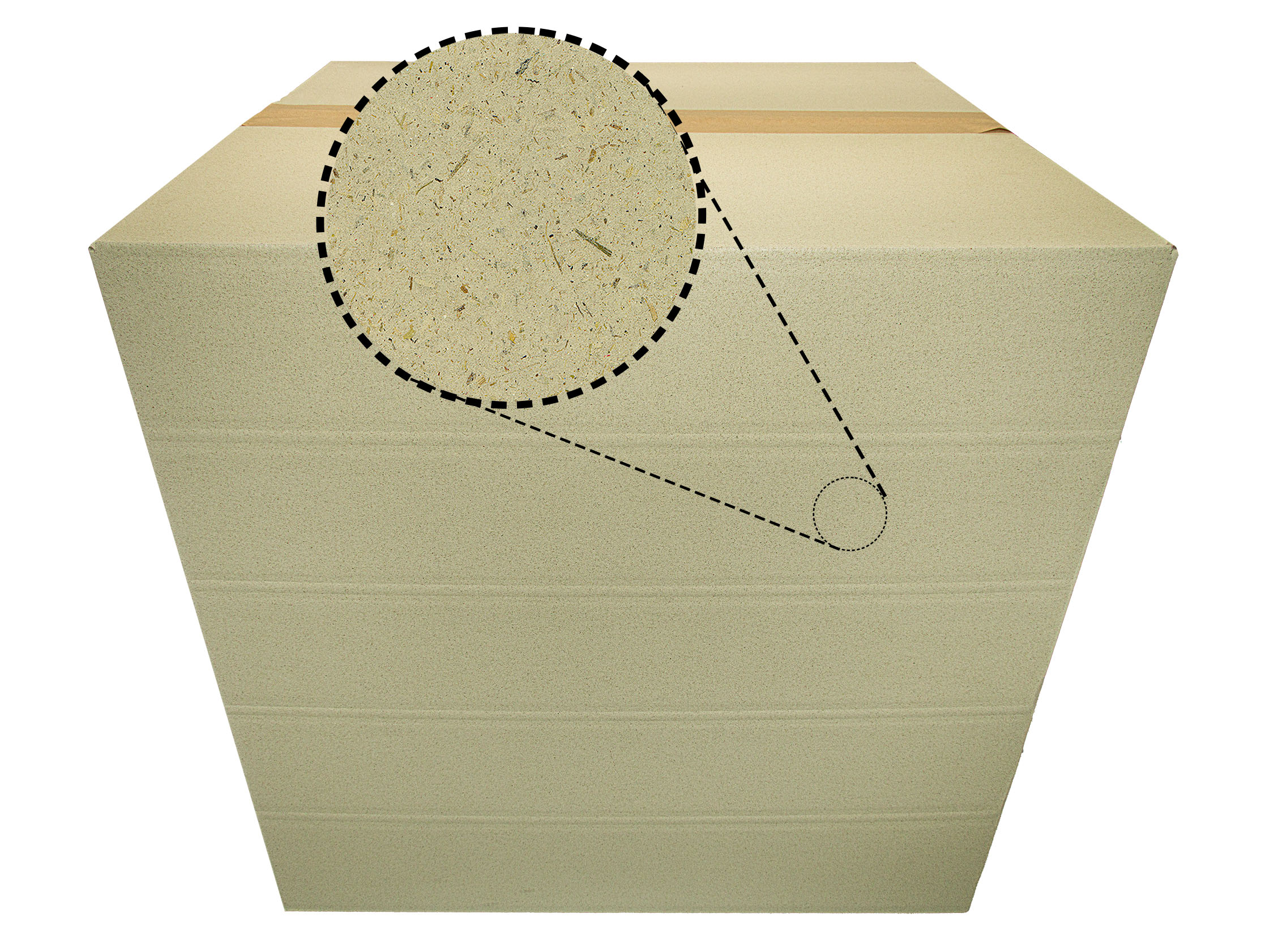 Die Kartonage besteht aus einer Kombination aus Graspapier (35%) und Altpapier (65%), wodurch er umweltbewusster ist als handelsübliche Kartons aus Altpapier.
