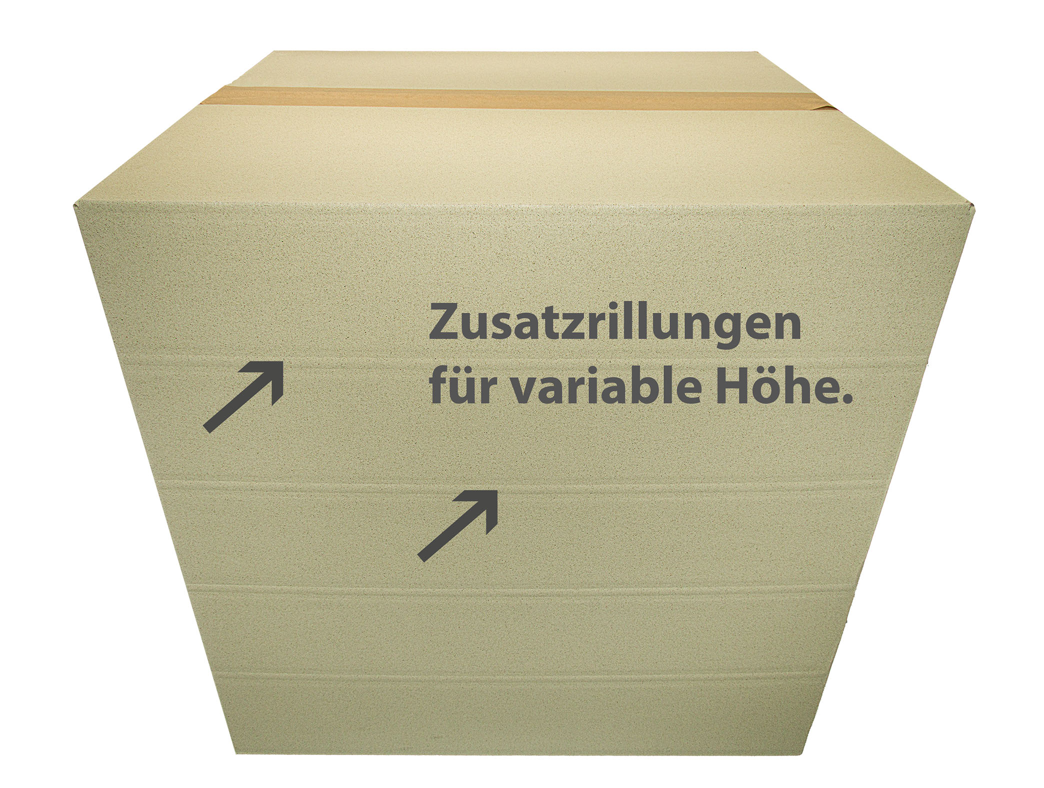 Dieser Karton ist in der Höhe variabel da er über Zusatzrillungen verfügt. Durch Einschneiden der Ecken können Sie so die Seiten herunterklappen in die Höhe minimieren. Sie sparen sich somit weitere Kartongrößen, Füllmaterial und Lagerplatz.