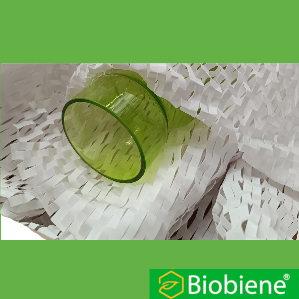 Biobiene® Honeycomb Paper in Weiß ist ein plastikfreies Polstermaterial für diverse Waren: Kosmetika und Schmuck werden schick verpackt und erhalten eine zuverlässige Polsterung, ebenso wie Glas- oder Keramikwaren.